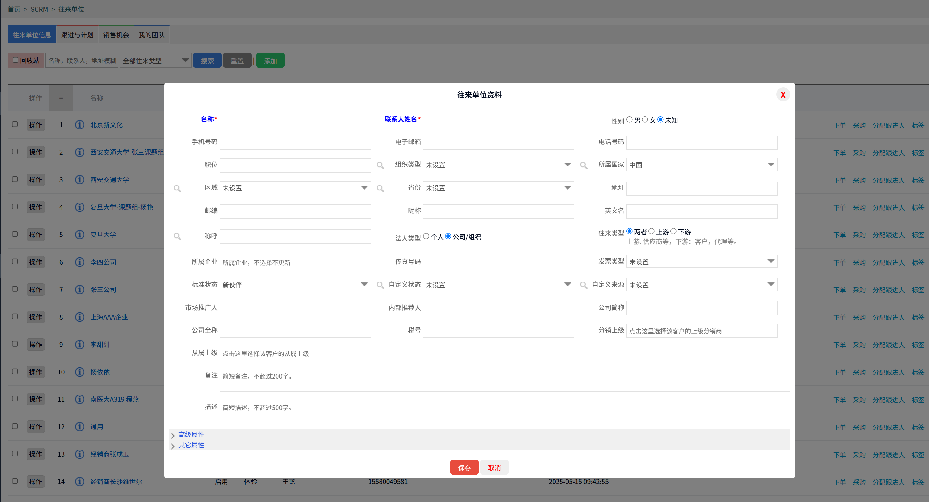 登录Uphub订单管理系统,进入SCRM模块,选择"往来单位",点击"添加"按钮,即可开始录入新的合作伙伴信息。